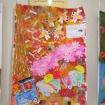 秋をテーマに模造紙に、全クラスの作品が盛り込まれています。