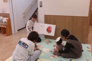 その後は「だるまさんがころんだ」の大型絵本を見て楽しく会が終わりました。